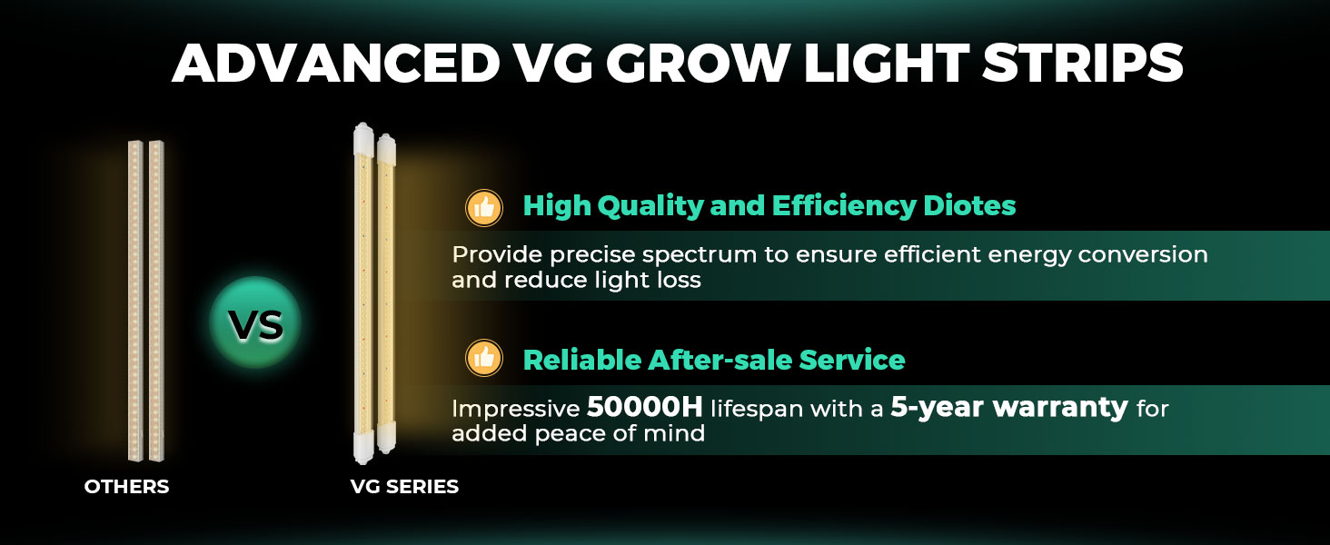 - Rated Lifespan: 50,000 hours — eliminating lamp replacement cycles that compound labor and consumable costs in fluorescent-based propagation systems.